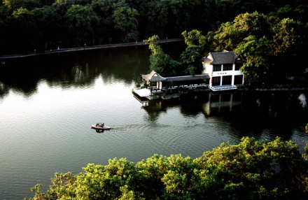 浮莊坐落在包河?xùn)|大島上。因其遠(yuǎn)觀如一片柳葉浮于水面之上,又因島上建筑類(lèi)似古代村莊,故名浮莊。