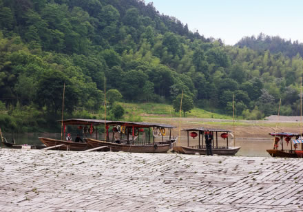 漁梁古壩位于城南1公里處的練江中,是新安江上游古代攔河壩,已有近1400年的歷史了。它橫截練江,使壩上水勢平坦,壩下激流奔騰。壩南端依龍井山,北端接漁梁古鎮(zhèn)老街。這條老街保存完好,是典型的徽派民居布局,窄窄的青石板路往河邊側(cè)有許多叉口,拾級而下,可下到漁梁壩。