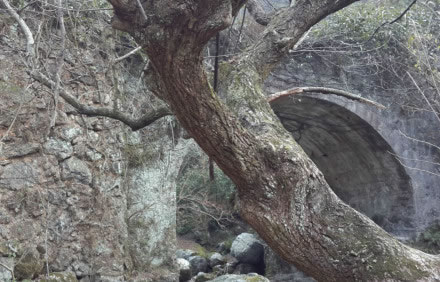 傳說此處原來有一座建于明朝萬歷年間的長形石拱橋,寬4.5尺長3丈6尺,形似臥龍,頭東尾西,棲息于兩山之澗,游浮在綠潭之上,是當?shù)匕傩諡榱私笛б郧箫L調雨順而建。然在清朝末年仲夏的一個晚上,狂風暴雨陡至,電閃雷鳴交集,地動山搖,蛟起龍吟,一夜之間臥龍橋不見蹤影。