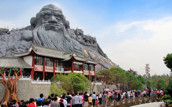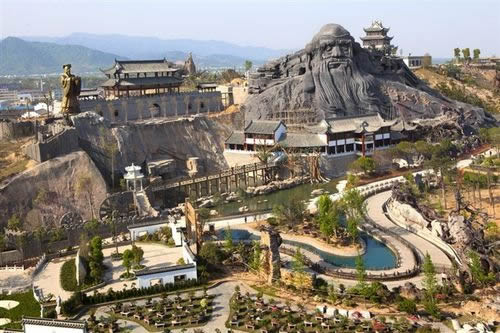 五千年文博園為了弘揚(yáng)道教文化,重金塑造老子像,是目前世界上最大、最高的老子像,高35米,形象設(shè)計(jì)為兩手臂張開,長為185米,雙目微閉像是在沉思、輪廓鮮明、從容慈祥、高大挺拔,不僅從形象創(chuàng)意和藝術(shù)處理上都透露出圣人的智慧和雄偉氣勢,生動(dòng)再現(xiàn)了老子一生為了弘揚(yáng)和發(fā)展自己的思想,不畏艱辛,探索治國安邦的豪情壯志,給后人留下了不朽的思想和精神,與其上雕刻的“老子天下第一”相應(yīng)。