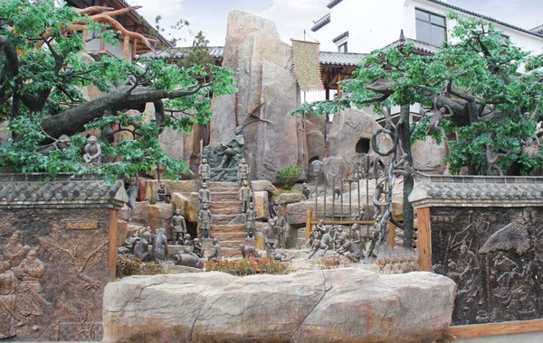 坐落于五千年文化長廊的花果山景區(qū),其占地面積大概70多平方米,它將中國四大名著《西游記》中孫悟空的猴穴呈現(xiàn)在此。期間雕刻了各種形態(tài)不一的猴像,形象生動(dòng),栩栩如生,借此也呈現(xiàn)了五千年文博園傳承和發(fā)展了四大名著文化。