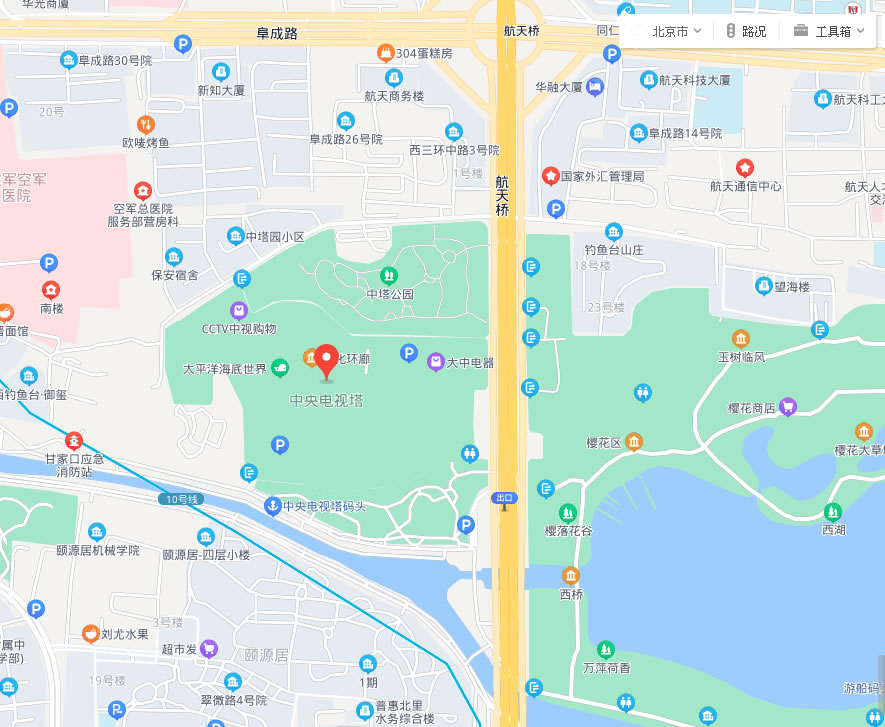 中央廣播電視塔,座落于北京西三環(huán)中路,東臨秀美的玉淵潭和著名的釣魚臺,南靠新建的西客站,北瞰旅游勝地頤和園。占地 15.4公頃,塔高405米。是世界第五高塔,是世界高塔協(xié)會(huì)成員塔,是中國廣播電視學(xué)會(huì)高塔委員會(huì)成員塔,是集廣播電視發(fā)射和旅游觀光、餐飲娛樂為一體的綜合性建筑。寬闊的棧橋廣場,漢白玉的退臺環(huán)廊,宮燈形的塔樓,祈年殿式的塔座,讓人流漣忘返。