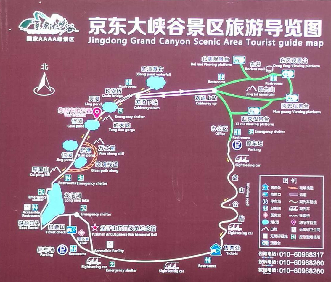 京東大峽谷是是集高山、峽谷、湖面、深潭為一體的綜合型自然風(fēng)景區(qū)。位于平谷城區(qū)東北的山東莊鎮(zhèn)魚子山民俗旅游村,距市區(qū)(東直門)80公里。 景區(qū)擁有廣闊的湖面、各異的深潭、蔥翠的山野,還有連接大峽谷和井臺山的落差長達(dá)千米的高空索道。 京東大峽谷景區(qū)適游期長,景區(qū)四季景致不同,春時(shí)山花爛漫,百鳥鳴囀;夏時(shí)清風(fēng)和煦,爽利暢懷;秋時(shí)萬山紅遍,層林盡染;冬時(shí)冰瀑高懸,銀裝素裹。四季所見所聞所感迥然不同,又各得佳妙,是平谷地區(qū)少見的適宜四季游覽的景區(qū)之一,也是北京地區(qū)少數(shù)適宜冬季觀光的景區(qū)之一。 “空中王子”阿迪力曾在大峽谷景區(qū)上空做“高空鋼絲生存表演”,該表演持續(xù)三天,引起了巨大轟動。表演結(jié)束后,表演所用的鋼絲、保險(xiǎn)繩等設(shè)備仍留在景區(qū),景區(qū)利用這些設(shè)備并加以改進(jìn),增加了安全系數(shù),形成了高空走鋼絲項(xiàng)目。既可鍛煉膽識,又可增強(qiáng)自信,不失為一個(gè)勇敢者的游戲。