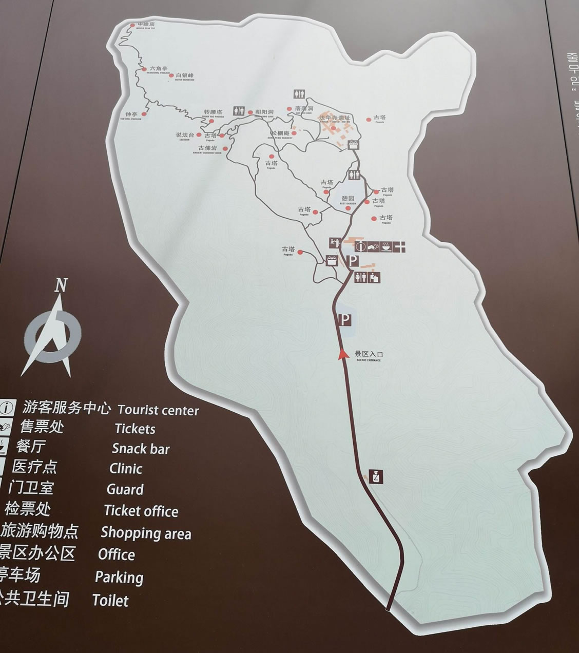 無銘覆缽密檐式塔位于法華禪寺址西南?偢8.8米。塔平面為六角形;、塔身略同前述各塔,但基座束腰處雕有金剛力士像則又不同前述各塔。塔身以上部位有檐三層,均作冰盤檐式,頂作疊澀式。再上依次為覆缽體、塔剎座和相輪。現(xiàn)存塔剎相輪以下部分。