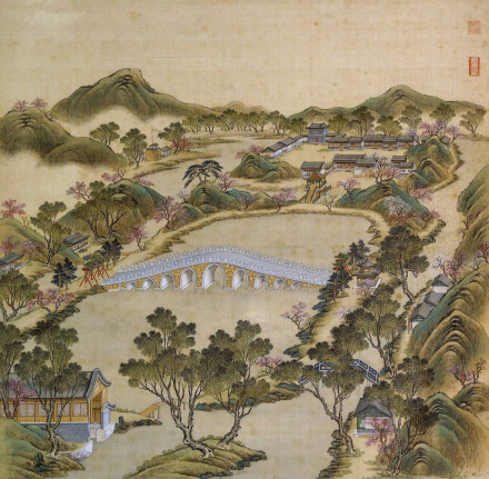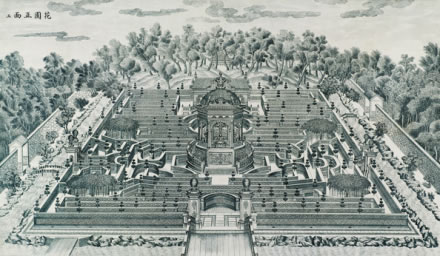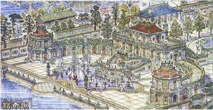圓明園的位置在掛甲屯的北面,距暢春園約一里多路,即今北京大學的北邊,清華大學以西?滴鯐r的圓明園,里面有前湖、后湖等,其內(nèi)建有“牡丹臺”“天然圖畫”等園景。當時圓明園還是一座藩賜園,規(guī)模不能超過皇帝的暢春園,所以建景不多,名聲也不大?珊髞黼S著乾隆皇帝的登基,清王朝的盛世的到來,在其多年陸續(xù)擴建中,終于成為中國最宏偉的皇家園林。