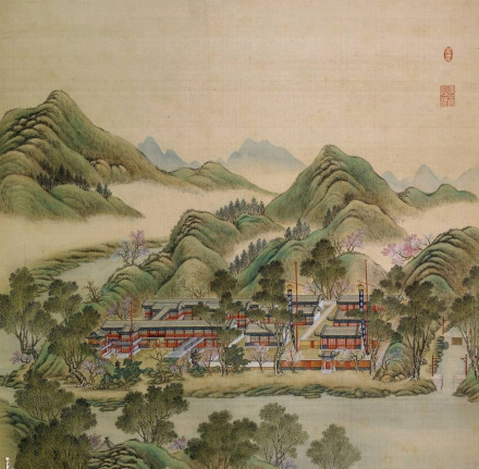 清夏齋:夏景為清夏齋。清夏齋原是西爽村內(nèi)的一處建筑,后經(jīng)過改建,更名為清夏齋。清夏齋的建筑空間并不講求中軸對稱的格局,而且將建筑、亭、廊、室外濱水場地、湖、山等要素結(jié)合在一起,既有室外游樂空間,又有室內(nèi)起居空間,同時院內(nèi)還有“修竹數(shù)桿,蒼松百尺”。