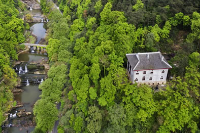 聽泉樓(林森別墅)位于重慶市巴南區(qū)南泉街道虎嘯村,長南橋西南約120米建文峰北麓。建于1937年,坐西向東,面對(duì)虎嘯口,右靠建文峰,與“孔祥熙官邸”相鄰,四周綠樹環(huán)抱。該建筑大小廳室15間,占地面積509㎡,建筑面積994㎡,通高13.5米。建筑主體為中西合璧風(fēng)格,青灰色調(diào),磚木結(jié)構(gòu),單檐歇山式屋頂,鋪素面小青瓦。一樓一底帶地下室,地下室均為條石砌筑。兼具住宿、辦公、防空功能。室內(nèi)有壁爐與夾墻相同,可為各房間供暖,其中一間內(nèi)墻嵌設(shè)槍械柜。該建筑為國民政府主席林森在重慶的主要官邸之一,建筑和環(huán)境風(fēng)貌保存較為完整,是一處具有重要?dú)v史價(jià)值的抗戰(zhàn)遺址。2009年12月25日,渝府發(fā)〔2009〕118號(hào)公布為重慶市第二批市級(jí)文物保護(hù)單位;2013年3月5日,國發(fā)〔2013〕13號(hào)公布為全國重點(diǎn)文物保護(hù)單位(第七批)。
