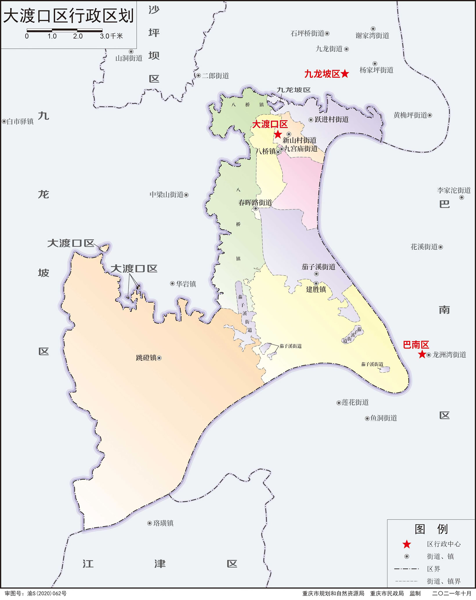大渡口區(qū)轄5個(gè)街道、3個(gè)鎮(zhèn):