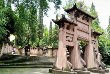 忠義祠位于護(hù)國(guó)寺右側(cè),與寺內(nèi)藥師殿僅一墻之隔,有門洞與護(hù)國(guó)寺相通,也可從護(hù)國(guó)寺右側(cè)小道進(jìn)入。始建于明弘治七年(1494年),原名“王張祠”,祀王堅(jiān)、張玨二將忠烈。明弘治十二年(1499年),合州知州宋琢見(jiàn)“王張祠”簡(jiǎn)陋而集資整修。明正德十二年(1517年),合州知州佘崇鳳刻石立碑并培修祠宇。清初,“王張祠”遭兵亂,片瓦無(wú)存。清乾隆二十四年(1759年),合州知州王采珍重修,立余玠、王堅(jiān)、張玨、冉琎、冉璞5位牌位祀祭,改祠名為“忠義祠”。后歷經(jīng)培修。忠義寺整座建筑由正廳、耳房和左右?guī)拷M成,采用均衡對(duì)稱式,在縱軸線主要建筑物相對(duì)對(duì)峙,構(gòu)成大門進(jìn)出的三合院。整座庭院東西寬20米,南北縱深30米。進(jìn)入石坊形大門是一個(gè)院壩兩面的廂房,拾級(jí)而上至正廳。迎面高懸“忠義千秋”金字巨匾,匾下祭臺(tái)上排列余玠、王堅(jiān)、張玨、冉琎、冉璞牌位。祭臺(tái)正面有祝文:“維神才兼武,志秉忠貞。畫地成城,據(jù)形勝而保蜀土;協(xié)力戰(zhàn)守,遺魚餅以退元戎。忠誠(chéng)貫日星,先后相繼;大節(jié)凌霄漢,古今照臨。茲屆仲春修祀典,肅陳籩豆,伏維來(lái)歆。尚饗!睆d堂楹柱有華國(guó)英撰寫的對(duì)聯(lián),上聯(lián)“持竿以釣中原,二三人盡瘁鞠躬,直拼得蒙哥一命”;下聯(lián)“把盞而澆故壘,十萬(wàn)眾披肝瀝膽,竟不圖王立二心”。忠義祠內(nèi)有宋孝宗時(shí)期碑文4塊,宋光宗時(shí)期2塊,宋寧宗時(shí)期5塊,乾道年間以后22塊,其中記錄釣魚城之戰(zhàn)史跡的12塊。
