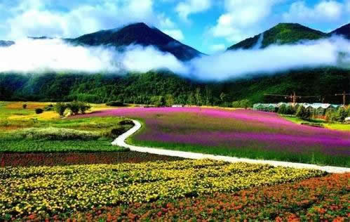 云中花海景區(qū)由1500畝構(gòu)圖花卉區(qū)、3000畝綴花草坪區(qū)、3000畝疏林草地鮮花區(qū)、2500畝有機(jī)生態(tài)農(nóng)業(yè)花海觀光區(qū)和休閑生活?yuàn)蕵穮^(qū)構(gòu)成,是世界上高海拔地區(qū)最大、最美的花海景觀,面積是日本北海道花海的7倍。