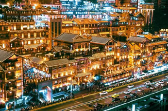洪崖洞,原名洪崖門(mén),是古重慶城門(mén)之一,位于重慶市渝中區(qū)嘉陵江濱江路88號(hào),2003年,總投資3.85億元對(duì)洪崖洞片區(qū)進(jìn)行舊城拆遷改造,于2006年9月竣工開(kāi)業(yè),是兼具觀光旅游、休閑度假等功能的旅游區(qū)。