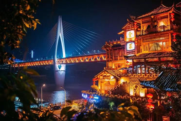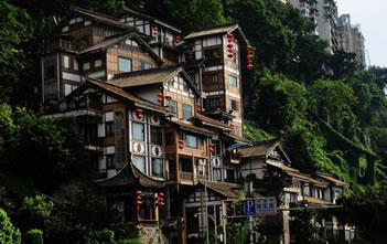吊腳樓作為西南地區(qū)獨(dú)有的傳統(tǒng)民居建筑,最早可追溯到東漢以前。由于重慶山多,土地緊張,祖先依山就勢(shì),因地制宜,利用木條、竹方,懸虛構(gòu)屋,陡壁懸挑,依山建造出一棟棟樓房。依山、靠崖、臨江是重慶吊腳樓的獨(dú)到之處,洪崖洞吊腳樓建筑群復(fù)原了巴渝古都風(fēng)貌,把古重慶最具特色的吊腳樓、古牌坊、木垂花、懸挑梁、雕刻樓廊、半山街市和青石板路等山地民居集中展現(xiàn)出來(lái),在懸崖峭壁上建成高13層的吊腳樓群,因此被建筑業(yè)界稱為“中華懸崖城”,被中外媒體譽(yù)為“天空之城”。