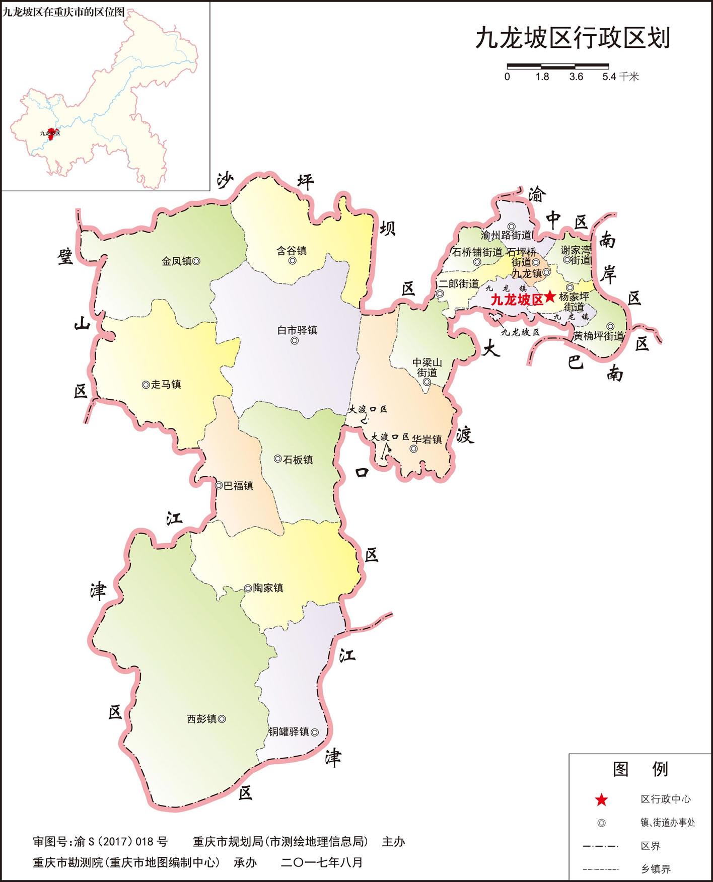九龍坡區(qū),地處重慶市主城區(qū)西部,東與渝中區(qū)相鄰,南與大渡口區(qū)接壤,西與璧山區(qū)和江津區(qū)相連,北與沙坪壩區(qū)毗鄰。南北最長36.12千米,東西最寬30.4千米,總面積432平方千米。