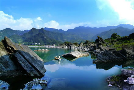 重慶黔江小南海國家地質公園,位于重慶市黔江區(qū)小南海鎮(zhèn)南海村,重慶與湖北交界處,距黔江城北部30余千米。是一個融山、海、島、峽諸風光于一體的高山淡水湮(堰)塞湖泊,也是中國國內迄今保存最完整的一處古地震遺址。