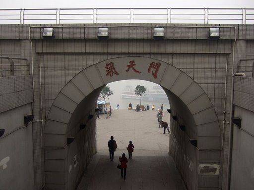 重慶朝天門位于重慶市渝中區(qū)渝中半島的嘉陵江與長江交匯處,城門原題有“古渝雄關(guān)”四個大字,是重慶以前的十七座古城門之一。南宋(1127——1279)宋朝偏安臨安(即今杭州)后,時有欽差自長江經(jīng)該城門傳來圣旨,所以才有了朝天門這個名字。