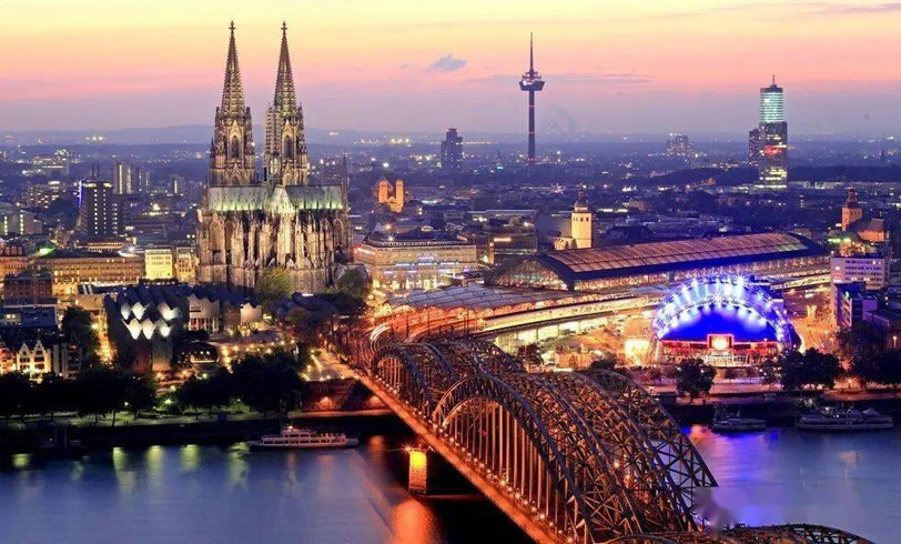 科隆 科隆市(Köln/Cologne)是德國(guó)的第四大城市,人口100.7萬,面積405平方公里,僅次于柏林、漢堡和慕尼黑,是一座大都市,市中高樓大廈鱗次櫛比,是一個(gè)繁華的商業(yè)城市,也是德國(guó)西部萊茵河畔歷史文化名城和重工業(yè)城市。 一譯“科倫”。公元前38年建為古羅馬要塞。曾是漢薩同盟主要成員。因位居歐洲東西和南北交通要沖,中世紀(jì)時(shí)經(jīng)濟(jì)已頗發(fā)達(dá)。十九世紀(jì)中葉后,隨魯爾煤田開發(fā)和鐵路修筑,發(fā)展更迅速。巨大水陸交通樞紐,重要的河港?坡-波恩航空站位于東南郊,市內(nèi)有通往布魯塞爾、波恩等地的直升飛機(jī)場(chǎng)。工業(yè)有軍工、冶金、機(jī)械、化學(xué)、制藥、煉油、紡織、食品等部門。全國(guó)重要褐煤產(chǎn)地之一,建有大火電站。全國(guó)金融中心之一。第二次世界大戰(zhàn)時(shí)遭嚴(yán)重破壞。多古跡,如著名科隆大教堂(圓頂上的兩塔尖高達(dá)161米)、羅馬時(shí)代地下廣場(chǎng)等。馬克思和恩格斯曾在此創(chuàng)辦《新萊茵報(bào)》。 科隆還是一個(gè)以羅馬式教堂和哥特式大教堂聞名于世的城市。屹立在萊茵河邊的科隆大教堂高157.31米,它有兩座哥特式尖塔,北塔高157.38米,南塔高157.31米?坡〈蠼烫檬鞘澜缟献罡叩碾p塔教堂,它已成為科隆市的象征和游客們向往的名勝之地。站在高高的塔頂極目遠(yuǎn)望,萊茵河猶如一條白色的緞帶從旁飄過。