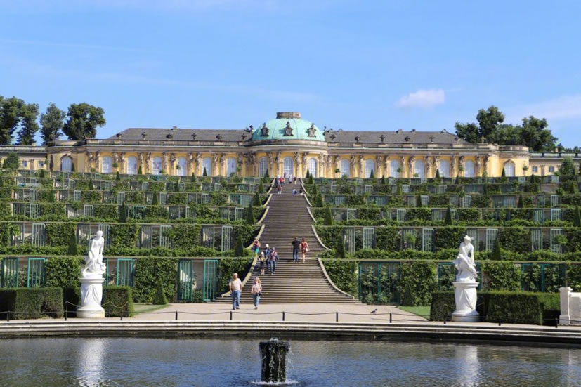 無憂宮 無憂宮(Sanssouci Palace)是18世紀(jì)德意志王宮和園林,位于德國(guó)波茨坦市北郊,為普魯士國(guó)王腓特烈二世模仿法國(guó)凡爾賽宮所建。宮名取自法文的“無憂”或“莫愁”。整個(gè)王宮及園林面積為90公頃,因建于一個(gè)沙丘上,故又稱“沙丘上的宮殿”。無憂宮是18世紀(jì)德國(guó)建筑藝術(shù)的精華,全部建筑工程延續(xù)時(shí)間達(dá)50年之久。雖經(jīng)戰(zhàn)爭(zhēng),但從未遭受炮火的轟擊,仍保存十分完好。 宮殿正殿中部為半圓球形頂,兩翼為長(zhǎng)條錐脊建筑。殿正中為圓廳。瑰麗的首相廳,天花板上裝潢富有想象力,四壁鑲金,光彩奪目。室內(nèi)多用壁畫和明鏡裝飾,輝煌璀璨。宮殿前有平行的弓形6級(jí)臺(tái)階 ,兩側(cè)和周圍由翠綠叢林烘托 。宮殿前有噴泉,正對(duì)著大殿門廊。此噴泉采用圓形花瓣石雕,四周有“火”、“水”、“土”、“氣”4個(gè)圓形花壇陪襯,花壇內(nèi)塑有神像,尤以維納斯像和水星神像造型精美,形象生動(dòng)。 據(jù)說整個(gè)宮內(nèi)有1000多座以希臘神話人物為題材的石刻雕像。宮殿東側(cè)還有珍藏124 幅名畫的畫廊,這些繪畫多為文藝復(fù)興時(shí)期意大利、荷蘭畫家的名作。畫廊寬敞明亮,每逢佳節(jié),這里都舉辦音樂會(huì);▓@內(nèi)有一座六角涼亭,采用中國(guó)傳統(tǒng)的碧綠筒瓦、金黃色柱、傘狀蓋頂、落地圓柱結(jié)構(gòu),被稱為“中國(guó)茶亭”。亭內(nèi)桌椅完全仿造東方式樣制造,亭前矗立著中國(guó)式香鼎。