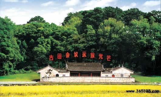 古田會議會址,位于古田鎮(zhèn)溪背村,原系廖氏宗祠,建于公元1848年(清道光二十八年),為四合院式建筑,有庭院、前后兩廳和左右兩廂房,建筑面積為826㎡。1917年,建立古田第一所小學(xué)——“和聲小學(xué)”,1929年5月紅四軍進(jìn)駐古田后把“和聲小學(xué)改名為曙光小學(xué),同年12月28日至29日,由毛澤東同志親自主持的紅四軍第九次代表大會(即古田會議)在這里勝利召開,通過了具有歷史意義的古田會議決議案,確立了思想建黨、政治建軍的指導(dǎo)思想和黨指揮槍的原則,是建黨建軍史上的里程碑,因此該會址先后被評為福建省“十佳風(fēng)景區(qū)之一”、全國第一批重點保護(hù)單位、全國十大優(yōu)秀愛國主義教育基地、全國紅色旅游經(jīng)典景區(qū)以及國家AAAA級旅游區(qū)。