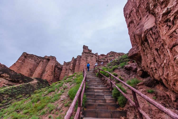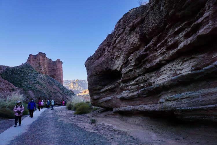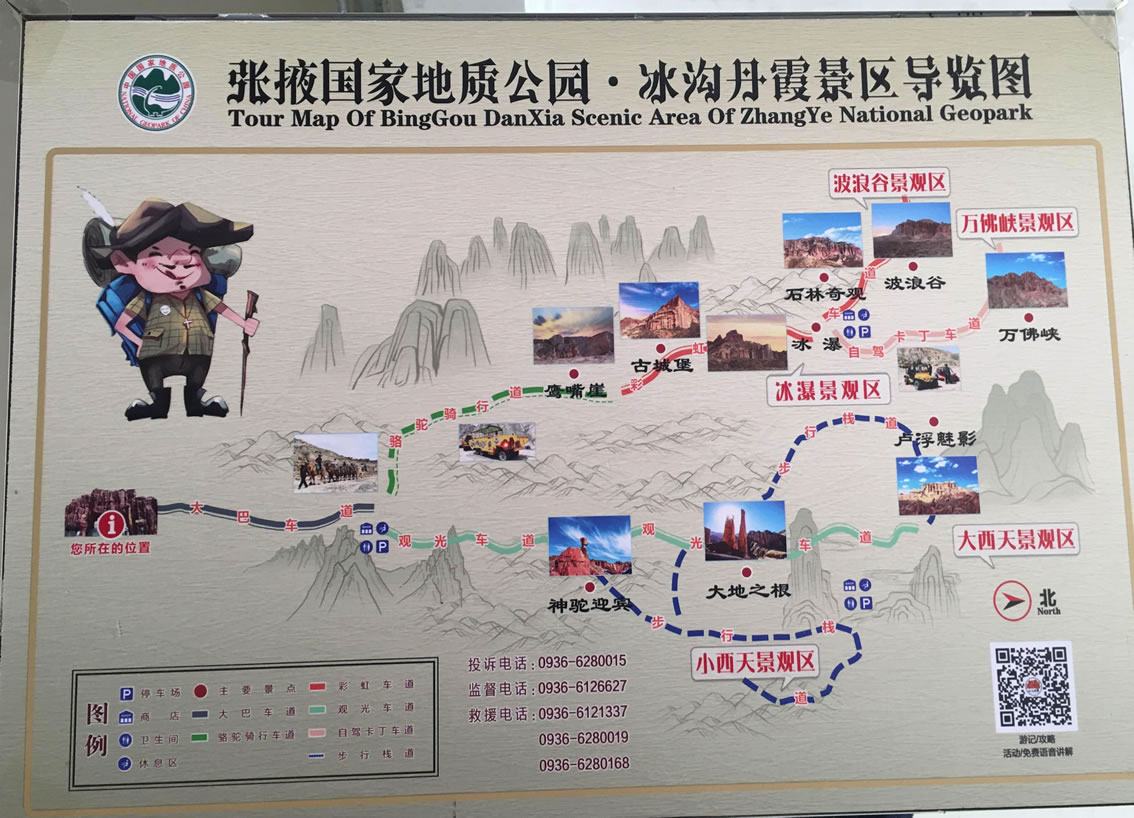 小西天景區(qū)位于冰溝景區(qū)的東部,主要景觀為一條滿布丹武地貌的山溝,均為長約800米的山體游步道,游覽時間大約60分鐘。主要景點有神駝迎賓、紅層地貌、泥瀑布、泥鐘乳、泥葡萄、桃園結義(新娘出嫁、樓蘭商駝、千里相會)、玄武門(龜蛇鎖江)、紅纓帽(裕固族帽子)、陰陽柱(大地之根)、石雞(筆架峰)、七女峰(侍女拜佛)、僧人崖、金蟾拜佛、大佛石等,最有名氣的有神駝迎賓、桃園三結義、玄武門、蘑菇石、大地之根、七女峰、望夫石等景觀。