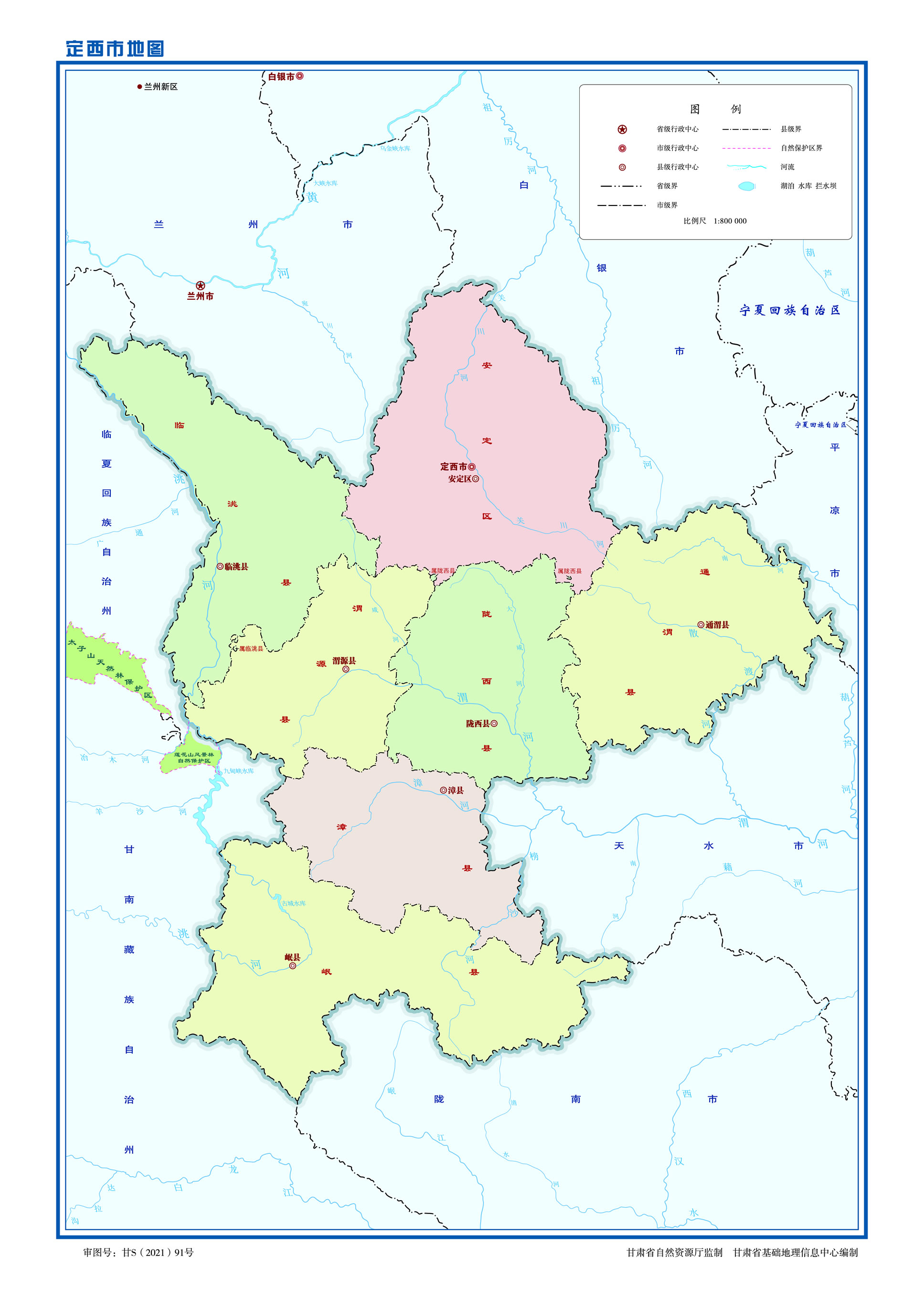 2003年4月4日,撤銷定西地區(qū),設立地級定西市,定西市轄原定西地區(qū)通渭縣、隴西縣、渭源縣、臨洮縣、漳縣、岷縣和新設立的安定區(qū)。