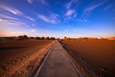 柱狀雅丹,是形態(tài)最為獨(dú)特的柱狀雅丹體。上部的粘土層難風(fēng)化,而下部的沙質(zhì)層卻易于風(fēng)化。這種差異形成了頂部粗大的塊體高懸于下部細(xì)小的柱體之上,在形態(tài)上似天外來客眺望凝思,吸引著游人去探索它的奧秘。
