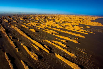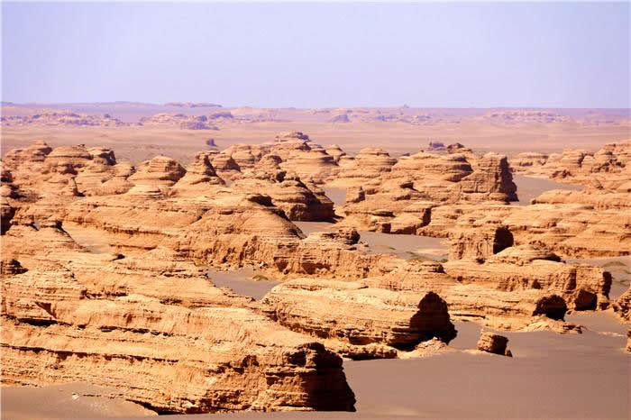 壟崗狀雅丹,分布在景區(qū)的西北部,南北斷續(xù)延伸可達(dá)上千米,寬5-30m。遠(yuǎn)遠(yuǎn)望去,規(guī)模宏大的雅丹猶如氣勢磅礴的遠(yuǎn)航艦隊(duì),在浩瀚無垠的漠海上劈波斬浪,蔚為壯觀。這種大規(guī)模集中連片的壟崗狀雅丹群在國內(nèi)外罕見。