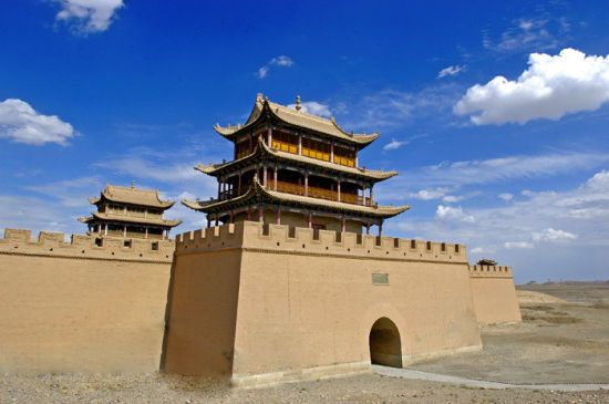 關城以內城為主,周長640米,面積2.5萬平方米,城高10.7米,以黃土夯筑而成,西側以磚包墻,雄偉堅固。內城開東西兩門,東為“光化門”,西為“柔遠門”,意為以懷柔而致遠,安定西陲。門臺上建有三層歇山頂式建筑。東西門各有一甕城圍護,西門外有一羅城,與外城南北墻相連,有“嘉峪關”門通往關外,上建嘉峪關樓。