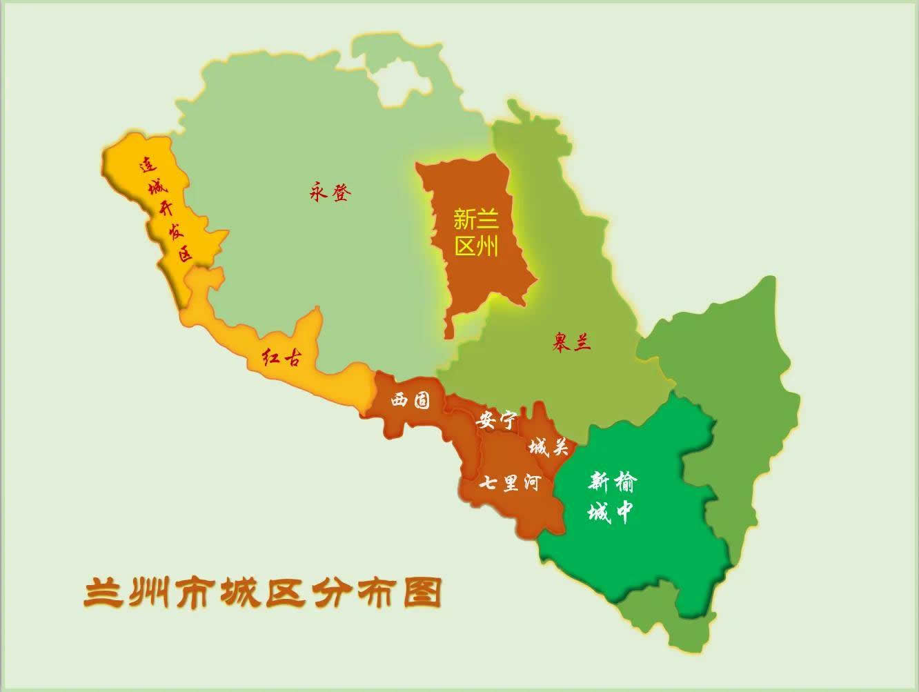 蘭州市轄5個區(qū)、3個縣: