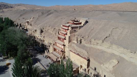 敦煌位于甘肅省的西部,從自然地理的位置上說,正處在河西走廊的西部盡頭處。這里南接青海,西連新疆,自漢代以來一直就是中西交通的樞紐。它的開鑿從十六國時(shí)期至元代,前后延續(xù)約1000年,這在中國石窟中絕無僅有。它既是中國古代文明的一個(gè)璀璨的藝術(shù)寶庫,也是古代絲綢之路上曾經(jīng)發(fā)生過的不同文明之間對話和交流的重要見證。莫高窟現(xiàn)有洞窟735個(gè),保存壁畫4.5萬多平方米,彩塑2400余尊,唐宋木構(gòu)窟檐5座,是中國石窟藝術(shù)發(fā)展演變的一個(gè)縮影,在石窟藝術(shù)中享有崇高的歷史地位。窟內(nèi)繪、塑佛像及佛典內(nèi)容,為佛徒修行、觀像、禮拜處所。敦煌石窟是建筑、雕塑、壁畫三者結(jié)合的立體藝術(shù)。洞窟分南北兩區(qū):南區(qū)492個(gè)洞窟是莫高窟禮佛活動(dòng)的場所,北區(qū)243個(gè)洞窟主要是僧人和工匠的居住地,內(nèi)有修行和生活設(shè)施土炕坑、煙道、壁龕、燈臺(tái)等,但多無彩塑和壁畫。