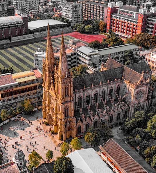 石室圣心大教堂,是天主教廣州教區(qū)最大教堂,國內(nèi)現(xiàn)存最宏偉的雙尖塔哥特式建筑之一,也是全球四座全石結(jié)構(gòu)哥特式教堂建筑之一(另外三座是巴黎圣母院、威斯敏斯特教堂、科隆大教堂),由于教堂的全部墻壁和柱子都是用花崗巖石砌造,所以又稱之為“石室”或“石室耶穌圣心堂”、“石室天主教堂”。是廣東省重點文物保護(hù)單位。