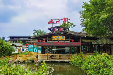 山水田園占地約0.26平方公里,以綠色環(huán)保為主題,以嶺南客家風(fēng)情為基調(diào),以休閑度假、運動娛樂為輔。2010年5月成功舉辦第六屆文博會山水田園分會場,同時被認定為深圳市文化+旅游示范園區(qū)(基地)。目前已建成集生態(tài)文化、客家文化及鄉(xiāng)村民俗文化為主背景的旅游觀光度假酒店,文化娛樂、休閑養(yǎng)生、會議、演藝等為一體的旅游文化產(chǎn)業(yè)園,也是中國首家以旅游度假國畫創(chuàng)作為主題的“中國(觀瀾)山水國畫產(chǎn)業(yè)基地”。 山水畫坊,國畫展館或依山傍水,曲徑通幽處,豁然見畫館;“畫在景中展,人在畫中游”,達到人、景、畫三者融合一體,形成一幅和諧動感的立體山水畫。踏進山水田園,展現(xiàn)在眼前的是一片秀美的世外桃源風(fēng)光。清波蕩漾的湖泊鑲嵌在綠野之中,宛如少女的明眸脈脈含情。湖岸邊垂柳依依,輕拂水面。水轉(zhuǎn)筒車,吱吱呀呀吟唱著鄉(xiāng)村古老的歌謠。放眼望去,青山疊翠,小橋流水,樓臺亭榭錯落,宛若陶淵明筆下“芳草鮮美,落櫻繽紛”,有“良田美池桑竹之屬”的桃源畫境。