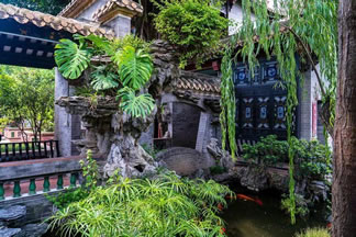 清暉園在陶瓷裝飾運用上采用刪繁就簡之法,在二萬多平方米的園區(qū)內(nèi),清一色的青磚灰瓦,沒有一個陶瓷脊飾。