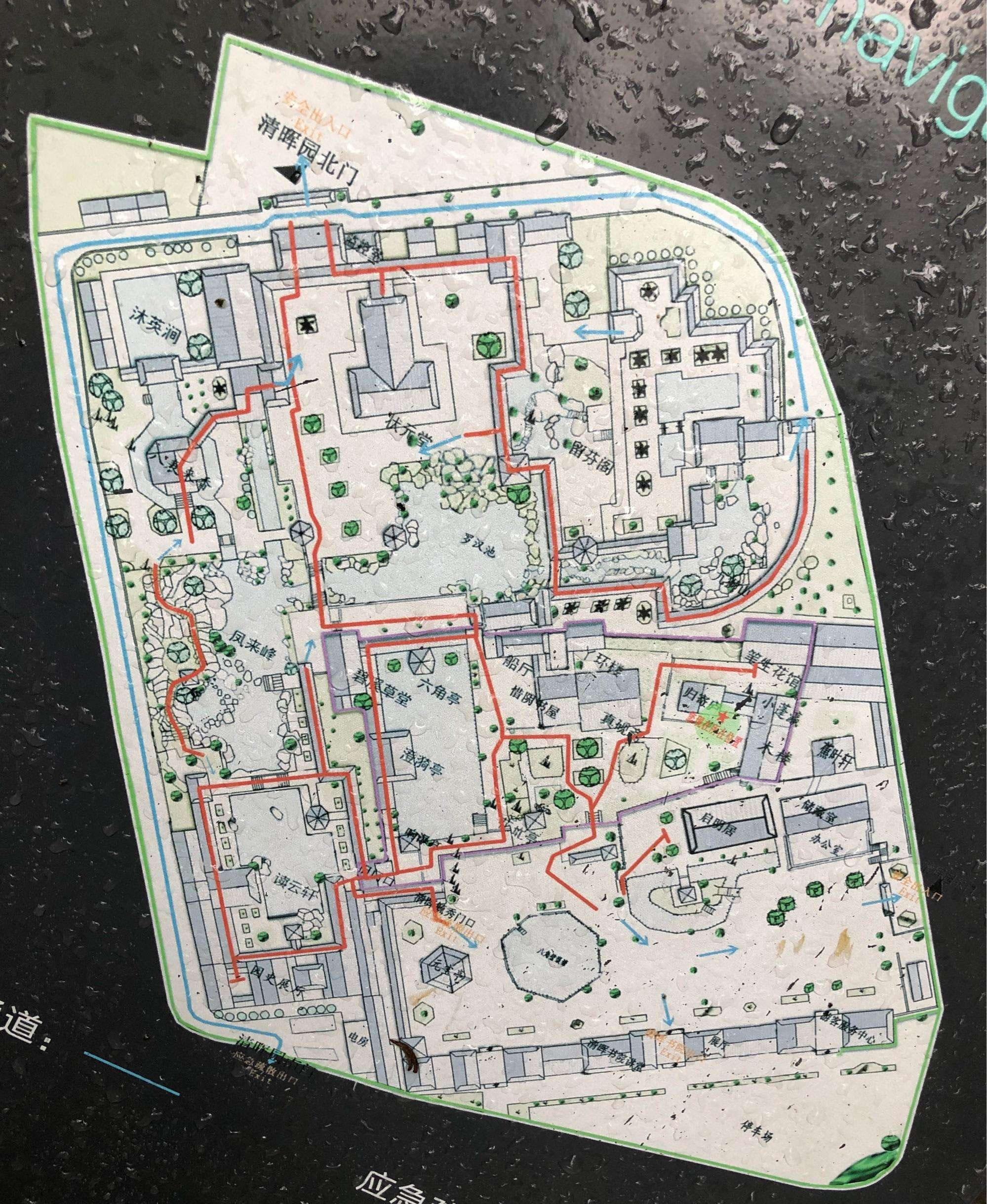 清暉園布局是大園包小園。清暉園的三大塊大體為:由原正門進入的東南角區(qū),中部的舊園區(qū),西北部近年興建的新園區(qū)。區(qū)域間雖有分隔,但卻以游廊、甬道以及各式小門相互勾連,融為一體。以舊園區(qū)為例,其西部以方池為中心;中部偏北的船廳等是精華所在;南部的竹苑、小蓬瀛、筆生花館等組成庭院,形成園中有園,即大園包小園的格局和韻味。