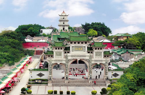 海豐蓮花山度假村(AAAA級旅游景區(qū))位于汕尾市海豐縣城北部7千米處,主峰海拔1337.3米,為粵東沿海第一高峰,狀如一朵盛開的蓮花,故名蓮花山。南麓坡面上,層巒疊嶂,翠綠相間,堆疊而起,層次分明,形成“蓮峰疊翠”的天下奇景。境內(nèi)云霧繚繞,森林密布,生長著仙人茶、羅漢松、白木香、胭脂木等珍稀植物;飛瀉著玉龍噴須、三井回音、龍?zhí)讹w瀑、七星疊瀑、雙龍瀑、回音瀑等18處瀑布;分布著召貢、埔仔等溫泉及大、小東門、天池、如來盤石等自然景觀,具有雄、奇、險(xiǎn)、秀、幽之特色,是廣東省的四大名山之一。明清時(shí)期,有高僧在此創(chuàng)建雞鳴寺、云蓮寺、金竹寺等7座古剎,宗教文化發(fā)達(dá),被譽(yù)為“蓮花佛國”。歷來有白玉蟾、劉克莊、文天祥、丁日昌等名人在此隱居或經(jīng)過,寫有贊美的詩篇。近代有周恩來、彭湃、徐向前、古大存等在此開辟和建立革命武裝根據(jù)地,留下紅四師師部遺址等。1995年3月,經(jīng)廣東省林業(yè)廳批準(zhǔn),建立廣東蓮花山森林公園。