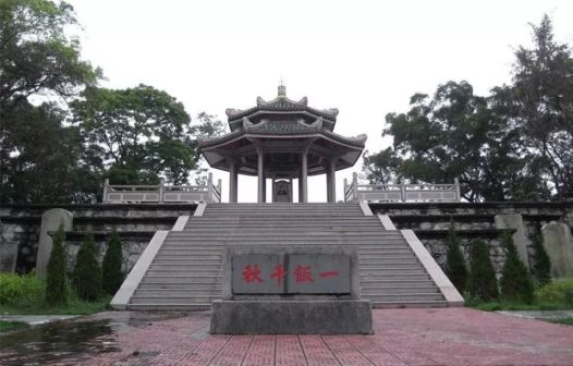 方飯亭位于汕尾市海豐縣城北郊五坡嶺上,坐西北向東南,占地960平方米。亭為六柱八角重檐攢尖頂,通高9米;亭內(nèi)覆蓋著一座廡殿頂古石亭,上刻“方飯亭”三字,內(nèi)豎立石碑刻有文天祥半身畫像,像上方陰刻小篆《衣帶銘》:“孔曰成仁,孟曰取義,惟其義盡,所以仁至,讀圣賢書,所學(xué)何事,而今而后,庶幾無愧!”兩側(cè)亭柱刻有明潮州狀元林大欽所撰對聯(lián):“熱血腔中只有宋,孤忠?guī)X外更何人!蓖で坝形鍖34級臺階通于嶺下草埔,當(dāng)中橫置著“一飯千秋”的石刻碑,兩旁豎立著歷代重修碑記,周圍竹木蔥蘢。該亭始建于明代正德十年(1515年),為紀(jì)念南宋丞相文天祥抗元在五坡嶺不幸被捕而建。亭前原有主建筑“表忠祠”和“忠義牌坊”,于民國二十七年(1938年)秋遭侵華日軍飛機(jī)炸損。1955年,海豐縣政府撥款重修方飯亭,并加蓋八角大亭予以保護(hù)。1957年5月,被縣政府頒布為縣級文物保護(hù)單位。