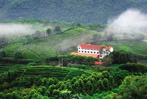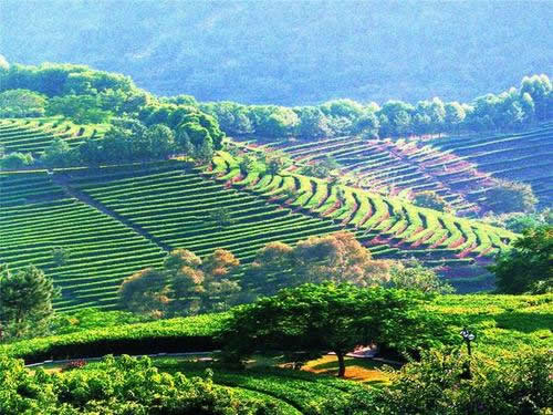 雁南飛茶田是飽蘸著祖國茶文化,在青山綠水間濃墨重彩揮灑而就的融茶葉生產(chǎn)、加工與旅游、度假于一體的山區(qū)“三高農(nóng)業(yè)”、“生態(tài)農(nóng)業(yè)”、“旅游農(nóng)業(yè)”的開放型旅游景區(qū),被譽(yù)為“現(xiàn)代農(nóng)業(yè)開發(fā)的成功范例”,梅州“三高農(nóng)業(yè)”開展的一個樣板和典范。雁南飛茶田在茶葉種植的同時結(jié)合了果樹的種植和園林綠化,大片的茶樹與龍眼、荔枝、芒果、枇杷等南國佳果、各式園林綠化景點(diǎn)相隔其中競相媲美。雁南飛茶田在科學(xué)種植的同時,采用傳統(tǒng)工藝結(jié)合現(xiàn)代高新技術(shù),精制出有獨(dú)特自然香型的雁南飛高級系列茗茶,并賦于濃厚的文化內(nèi)涵和高附加值,創(chuàng)造了名牌精品。雁南飛茗茶主要有:金單叢烏龍茶、自然香烏龍茶、金桂蘭烏龍茶、人參烏龍茶、金觀音烏龍茶、桂花烏龍茶,此外還有特制的茉莉花綠茶、映山紅紅茶等品種,適合不同品味的人士品茗。