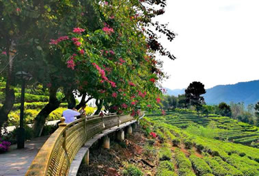 茶田棧道,全長3.2公里,沿著棧道步行,可觀賞到雁南飛茶田的全景。