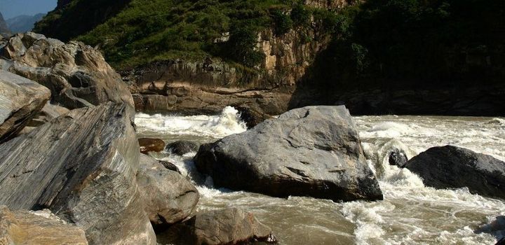 虎跳峽景區(qū),俗稱老虎跳,位于那坡縣百省鄉(xiāng)貴港新村與百南鄉(xiāng)上蓋水電站之間的那孟河畔,東興至那坡沿邊三級柏油路穿越其中,交通便利,可銜接那坡縣及廣西中越邊境公路旅游帶各景區(qū)區(qū)域旅游網(wǎng)。 老虎跳景區(qū)屬砂頁巖層斷裂帶中山地貌類型,中間夾雜少量石灰?guī)r石山,山巒連綿,溝谷幽深,地形復(fù)雜。該景區(qū)的旅游資源特色是“邊陲天塹,峽谷畫廊;邊關(guān)風(fēng)俗,苗族風(fēng)情”,擁有險(xiǎn)峻幽深的溪河峽谷,保存完好的原始森林區(qū)及特色是明顯的苗族風(fēng)俗與動聽的民間傳說典故等,融“山、水、林、峽、邊關(guān)民族風(fēng)情”于一體,具有雄、險(xiǎn)、奇、秀、幽、野等景觀特征,是邊境公路旅游帶上具有較高旅游開發(fā)價(jià)值的生存型自然山水風(fēng)景區(qū)。