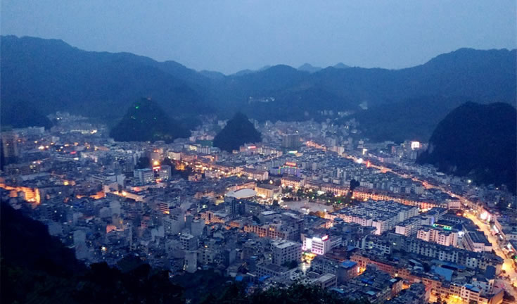 樂業(yè),隸屬于廣西百色市,被譽為“世界天坑之都”,位于廣西西北部,地處云貴東南麓,東北與河池市天峨、鳳山兩縣相鄰,東南依凌云縣,西南與田林接壤,西北與貴州省的冊亨、望謨、羅甸三縣隔紅水河相望?h城距國家重點工程龍灘水電站160公里,距百色市168公里,距廣西首府南寧市400公里,距貴州省省會貴陽市370公里,是重慶、貴州經(jīng)龍邦口岸(國家一類口岸)往東盟國家最為便捷的通道之一。樂業(yè)縣常住人口為146397人。總面積2633.17平方千米。全縣現(xiàn)轄4鎮(zhèn)4鄉(xiāng),有84個村民委(社區(qū))1084個村民小組。