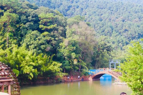 情侶的可再走5分鐘,到鴛鴦池泡山泉,泉水清澈,綠蔭掩映,是情侶沐浴之佳境(1小時(shí)),再往上可到達(dá)最大的山泉浴池新月潭、會(huì)仙池、將軍潭,新月潭、會(huì)仙池潭清水淺,適合兒童及水性不好的游客戲水;將軍潭水較深。