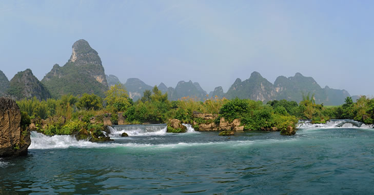 安平景區(qū)位于廣西大新縣雷平鎮(zhèn)安平村,距縣城25公里,距南寧165公里,景區(qū)內(nèi)山川秀麗,河流清澈,屬于典型的喀斯特地貌景觀。全長(zhǎng)45公里的黑水河貫穿全境,隸屬左江支流,河的兩岸群山綿延,奇峰聳峙,層巒疊翠,青竹秀水,交相輝映,景色極為秀美。坐在游船上,不僅可以看到翠竹、綠樹叢中的村落,欣賞天水一色的田園風(fēng)光,還可以看到河岸邊的奇石、水中的島嶼,更令人興奮的是還可以觀賞到從上游一涌而下的大小瀑布和激流,感受大自然給予的恩惠。