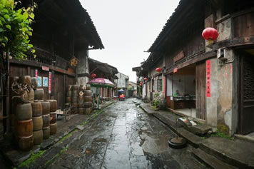 古鎮(zhèn)所有的房屋都是磚木結(jié)構(gòu),房門是一排木板,早晨把木板拿掉,家里的一切是透明的;到了晚上,再把木板裝上,就與外界隔絕了。這些房屋,每棟都有數(shù)百年的歷史。走在石板鋪成的街道上,房前有“咕嚕!蔽疅煹睦先艘约芭吭诶先四_邊打瞌睡的黃狗;肩上站著兩只魚鷹的漁夫穿著草鞋,從你身邊走過,去江邊捕魚;有相鄰的婦女在拉家常,時間仿佛在這里放慢行進的腳步,生活顯得非常平靜,然而卻很溫馨。