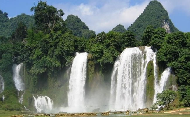 德天瀑布雄奇瑰麗,變幻多姿,碧水長流,永不涸歇。瀑布四季景色不同,春天凌草泛青,山花吐艷,瀑布四周被鑲起五彩繽紛的花邊;秋天梯田鋪金,層林盡染,高掛的銀簾霧氣沖天;冬天瓊珠閃閃,玉液潺瀑,山風把細流吹得飄飄灑灑;夏天激流如 龍,排山倒海,似萬馬奔騰而來。