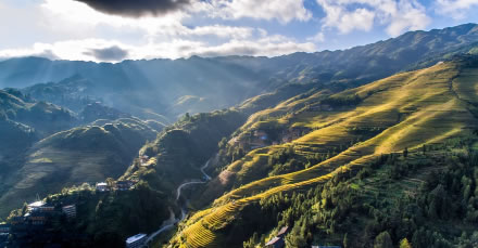 龍脊梯田地處海拔1916米的崇山峻嶺深處,梯田海拔最高處1180米,最低380米,垂直落差800米,面積71.6平方千米;分為金坑和大寨瑤族梯田觀景區(qū)、平安壯族梯田觀景區(qū),主要景點(diǎn)十幾個。她以磅礴的氣勢、流動的線條,變幻的神韻和獨(dú)特的民俗風(fēng)情而享譽(yù)中外,為天下梯田之望塵莫及,堪稱“世界之最”和“天下一絕”,是桂林旅游的重要組成部分,現(xiàn)有游客接待床位3000多個,為桂林黃金旅游線路之一。