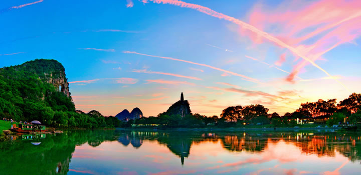 七星景區(qū)位于桂林漓江東岸,距市中心1.5千米,面積134.7公頃,綠化覆蓋率達(dá)84%,因有七星山、七星巖而得名。七星山七峰并峙,宛如北斗星座,北四峰像斗魁稱普陀山,南三峰像斗柄,稱月牙山。著名的七星巖就在普陀山山腹。巖洞雄廳深邃,洞中石鐘乳、石筍、石柱、石幔等千姿百態(tài),蔚為奇觀。七星景區(qū)具有典型的巖溶地貌景觀,集山、水、洞、石、庭院、林木、文物等精華,主要景觀有花橋、普陀山、駝峰月牙山、龍隱洞、桂海碑林、棲霞寺以及華夜之光廣。是桂林文化山水的坐標(biāo)、世界旅游組織推薦景區(qū)、國(guó)家重點(diǎn)名勝風(fēng)景區(qū)、中國(guó)首批4A級(jí)景區(qū)。