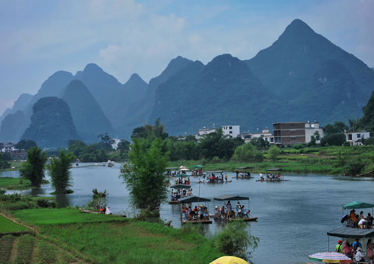 陽(yáng)朔楊堤漓江景區(qū)主要以坐竹筏游漓江為主,從楊堤漂到興坪,途經(jīng)鯉魚(yú)掛壁、童子拜觀音、神筆峰、浪石風(fēng)光、雄獅爬五指山、老人守蘋(píng)蘋(píng)果、八仙過(guò)江、九馬畫(huà)山、終點(diǎn)20元人民幣背景圖案處。