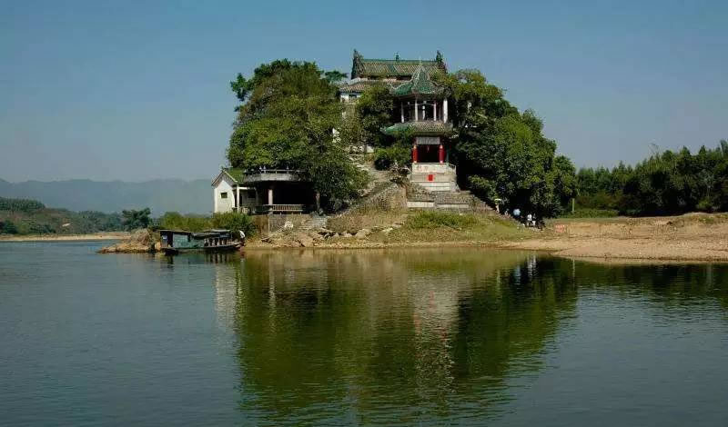 賀州浮山寺,全國重點文物保護(hù)單位,位于廣西賀州市賀街鎮(zhèn)臨、賀兩江交匯處,距臨賀故城(賀街鎮(zhèn))3千米,始建于唐朝,為紀(jì)念一陳姓秀才而建。 浮山四周懸崖峭壁,奇險無比,相傳浮山寺,不管遇多大的山洪,從未被水淹過,浮山始終浮在水面之上。山門石邊的浪滄亭,刻有李濟(jì)深先生手書的"浮山"二字以及歷代書法家的作品。山上有環(huán)碧亭、陳侯祠、對歌樓、釣魚臺等建筑。