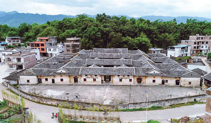 賀州江氏客家圍屋,位于廣西賀州市八步區(qū)蓮塘鎮(zhèn)仁沖村,建于清代,已有200多年歷史。圍屋建筑為方形對稱結(jié)構(gòu),四周有3米高墻與外界相隔,屋宇、廳堂、房井布局合理,廳與廊相通,廊與房相接,錯落有致。屋檐、回廊、屏風(fēng)、梁柱等設(shè)計精致,有典型的客家建筑文化藝術(shù)風(fēng)格。 2019年,入選第八批全國重點文物保護(hù)單位。