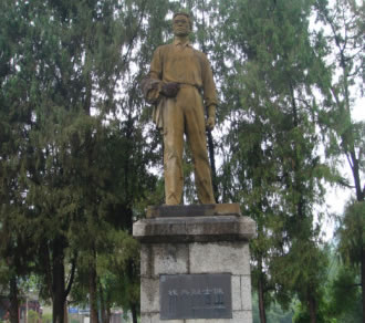 錢興烈士塑像矗立在黃姚鎮(zhèn)寶珠觀中共廣西省工委紀(jì)念館前的小廣場上,塑像高3米,玻璃鋼塑造。塑像基座高2.6米,寬1.5米,臺基邊長1.1米,臺下階梯三級總高0.5米,為花崗巖結(jié)構(gòu)。這一尊塑像是為了紀(jì)念中共廣西省第一任工委書記錢興于1986年興建的。