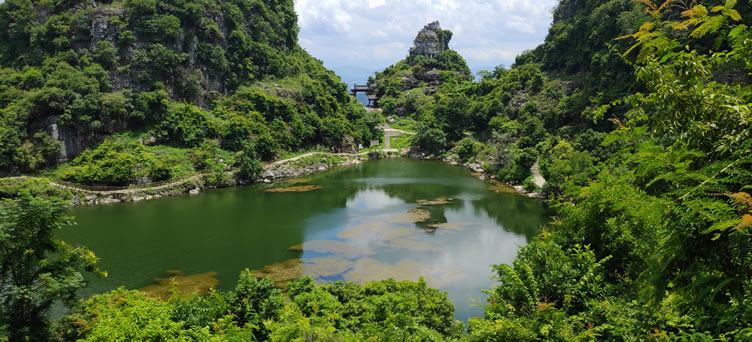 “八仙天池”(又稱:“八仙山”、“八仙寨”),是全國三個天池之一,1988年經(jīng)自治人民政府批準,列為自治區(qū)級風(fēng)景名勝開發(fā)保護區(qū)。距武宣鎮(zhèn)6千米的大山峽村八仙山。山體呈圓形,面積2平方千米,山體313米高程,四周環(huán)列八座山峰,在高出地面127米的山腰中有一池天然碧水,似“八仙托玉盤”,故稱:“八仙天池”。天池長約150米,寬100米,水深10米。又名:“八仙潭、龍?zhí)、仙湖、神秘?rdquo;。八仙山四周空蕩,雨不盈,旱不闊,水清無塵,味甘可飲。
